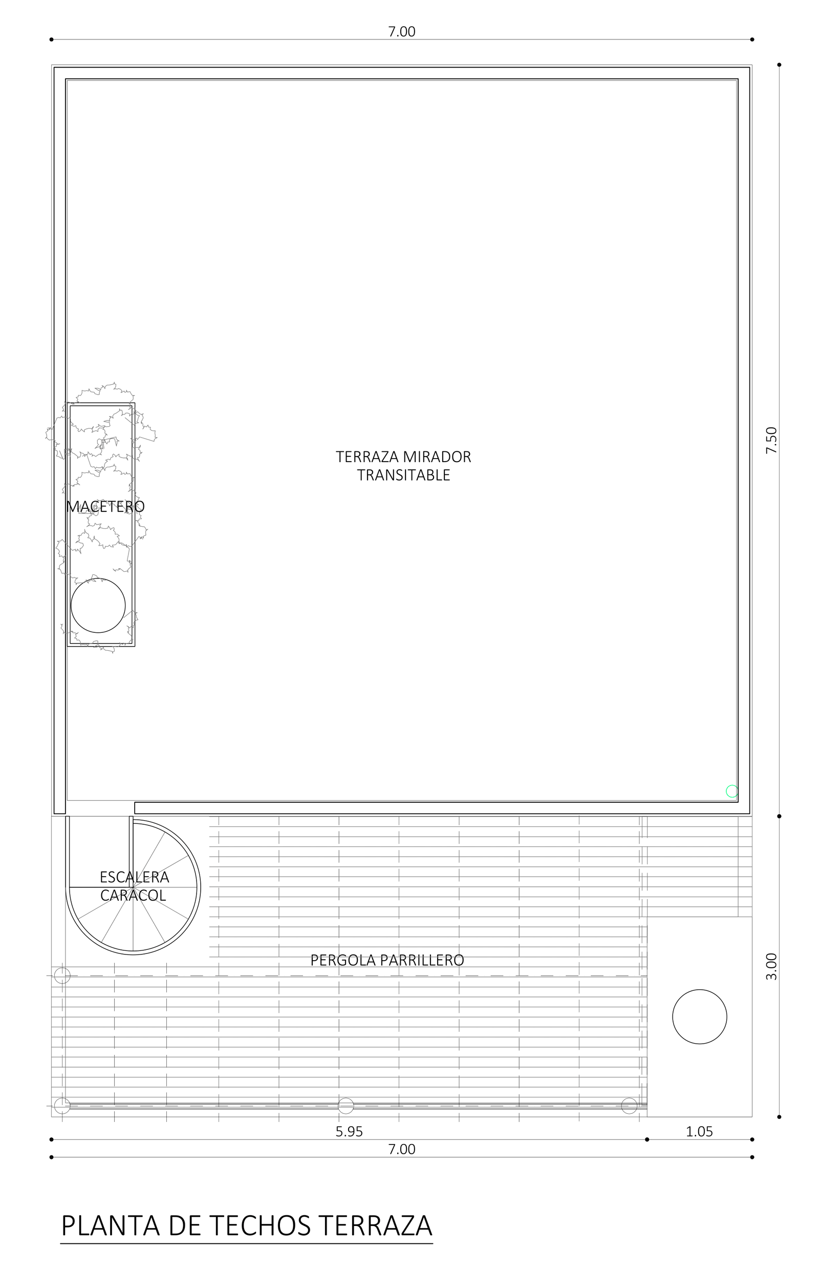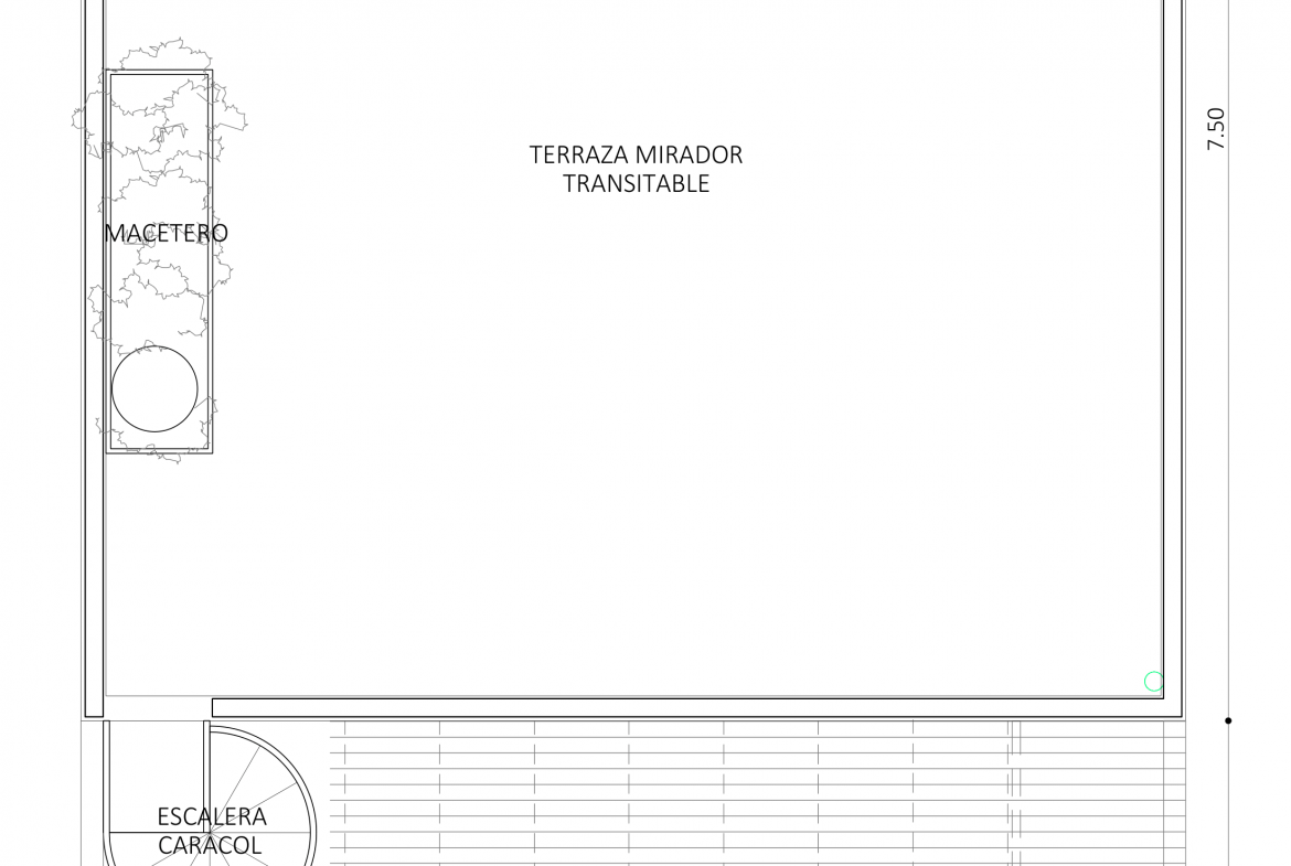 Terraza mirador transitable. Acceso por escalera caracol en acero corten.